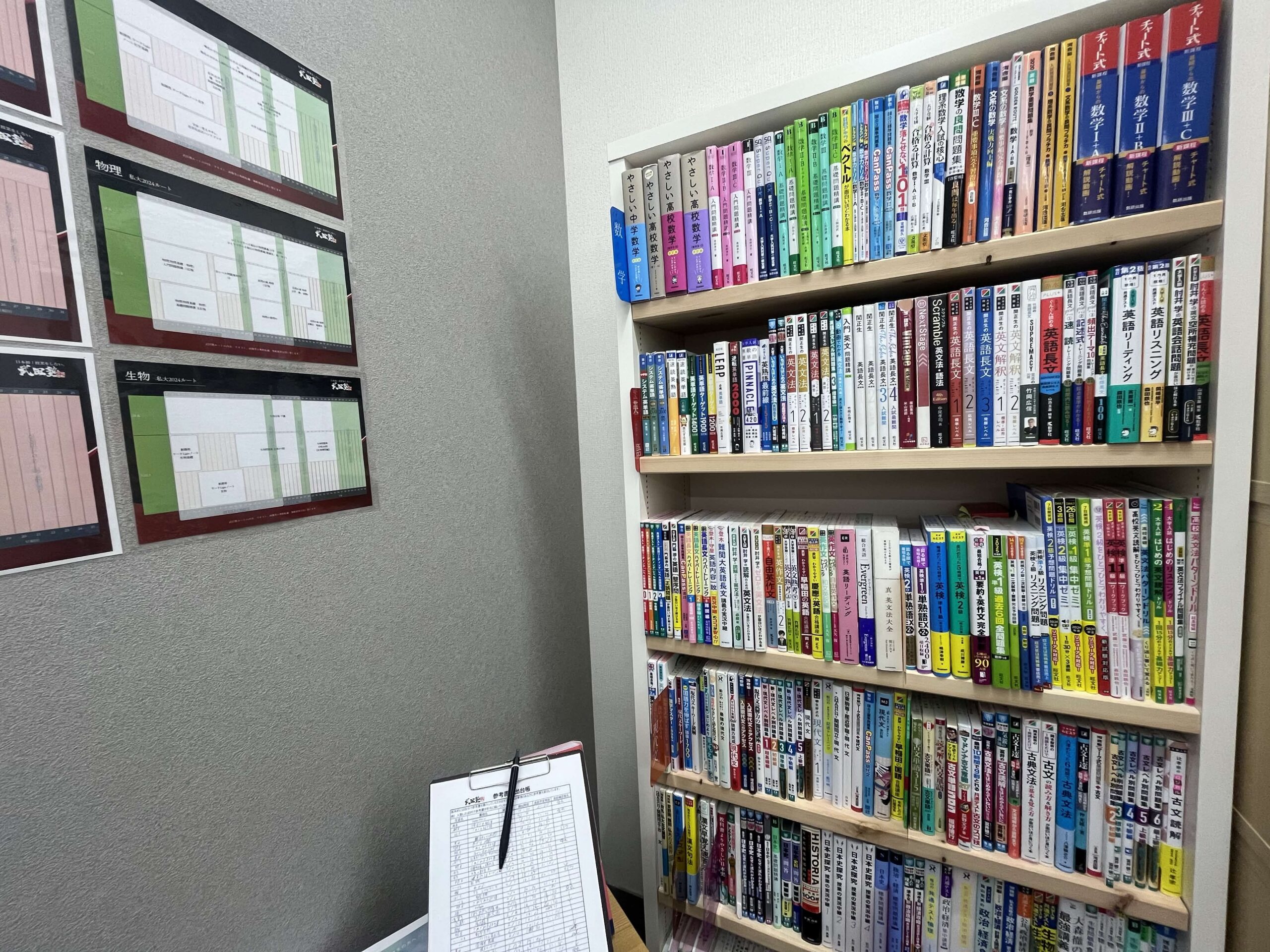 先ず志望校や現在の学力などを確認させていただき、一人ひとりの状況に合わせて出版されているすべての参考書、問題集の中から最適な参考書を使っていきます。