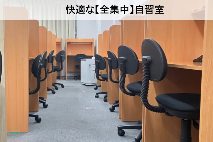 仕切りがあり、自分だけの集中できる空間で勉強ができる【全集中】自習室!