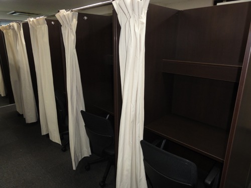 全26席が半個別ブース型となっており、左右にパーテーション、背面にカーテンが設置されていて、周囲の視線や音を遮断できるため、集中しやすい環境が整っています。
