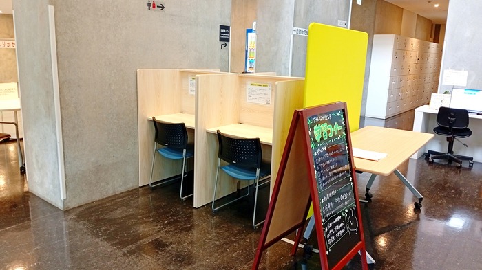 1階ロビーには常設の学習机(2席)があり、予約は不要で、静かに集中できる環境が整っています。