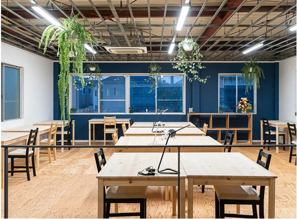 このスペースは元布団屋の倉庫をDIYでリノベーションした施設で、おしゃれで開放的な空間が特徴です。