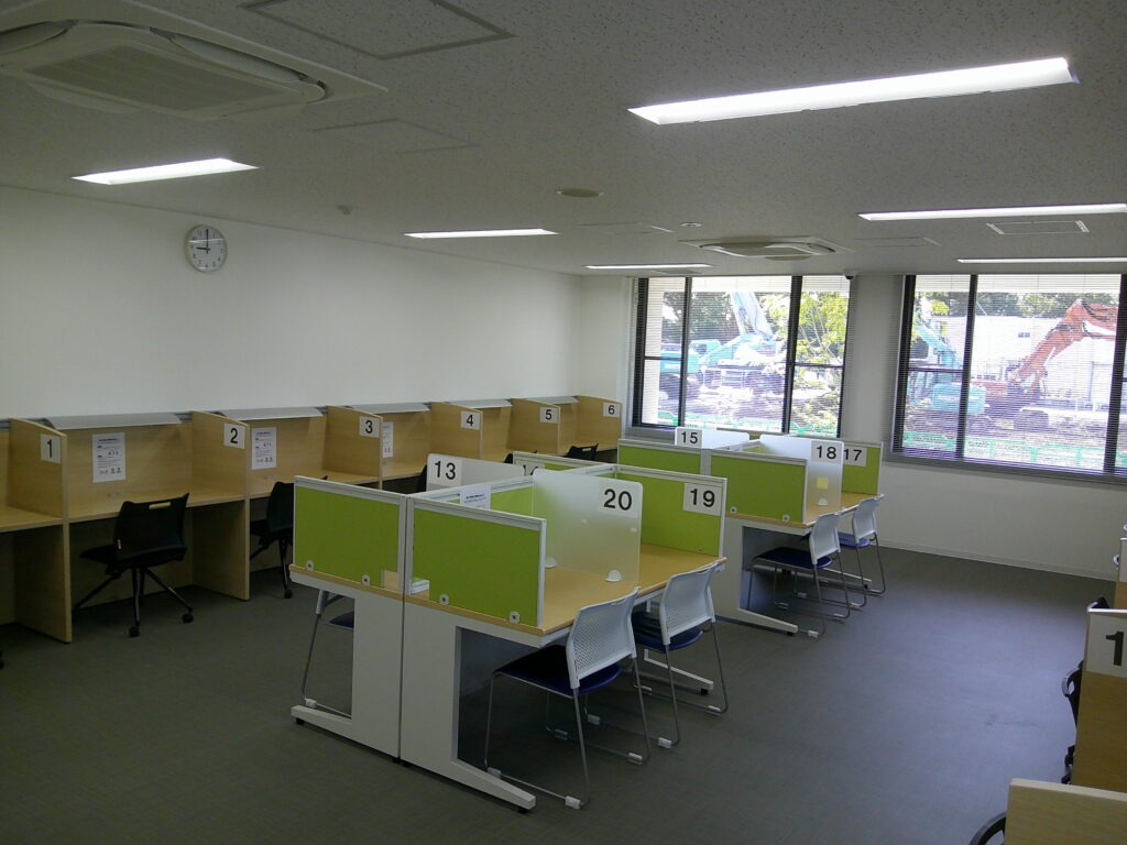 学習室は静かに勉強したい人が集まるスペースなので、参考書・問題集を広げて長時間集中するのに向いています。